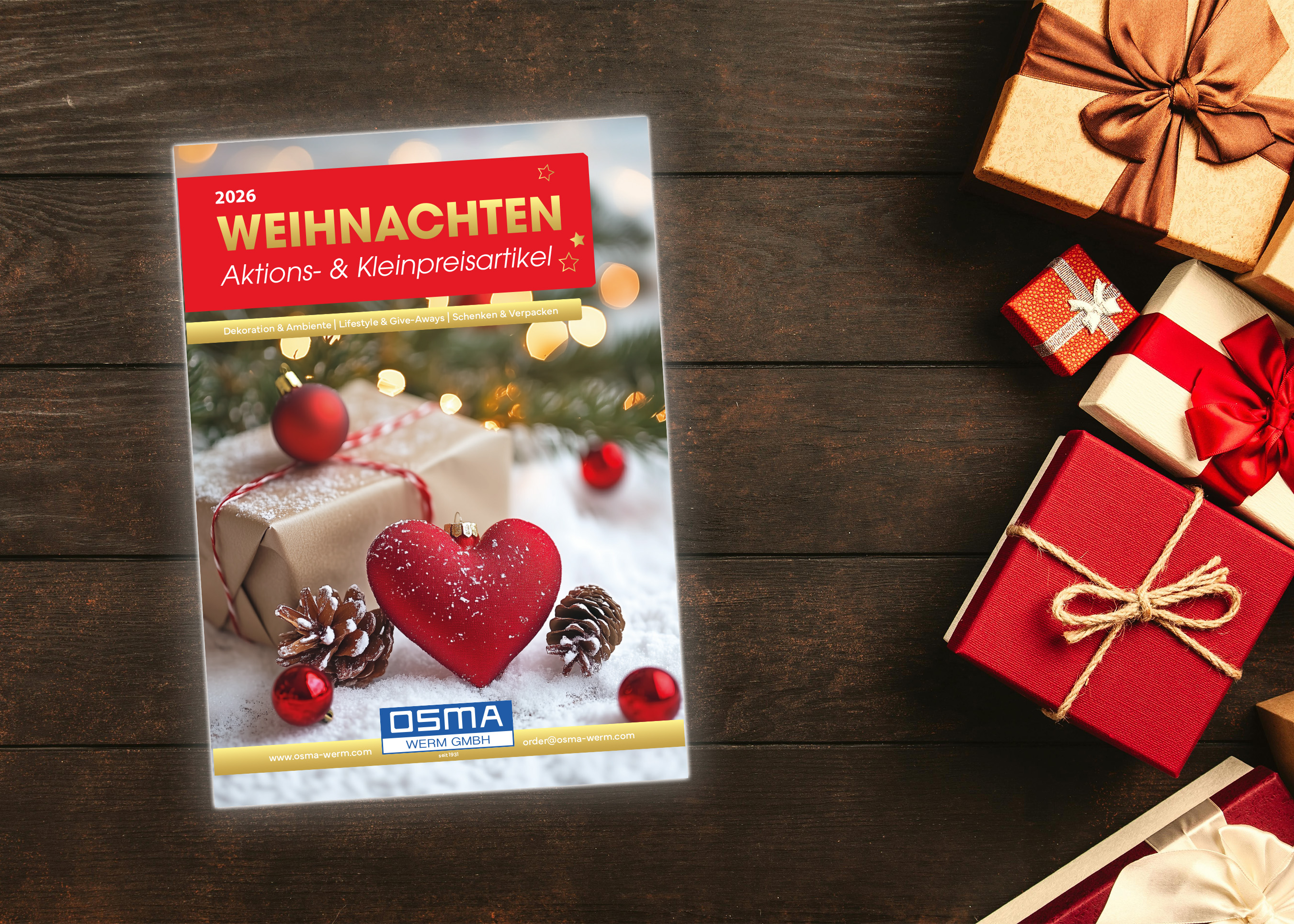 Beachten Sie unser Weihnachtssortiment 2026. Wir bieten Ihnen über 700 Aktions- und Kleinpreisartikel aus den Bereichen Dekoration & Ambiente, Livestyle & Give-aways und Schenken & Verpacken.