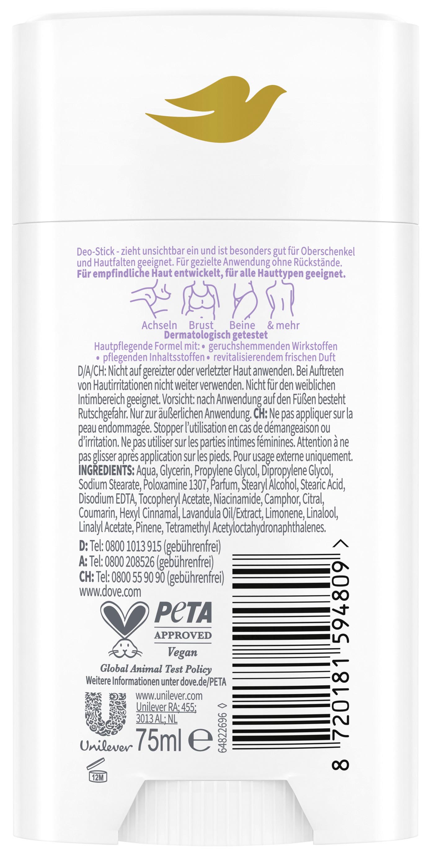 Dove Whole Body Deostick 75ml Lavendel&Kamille