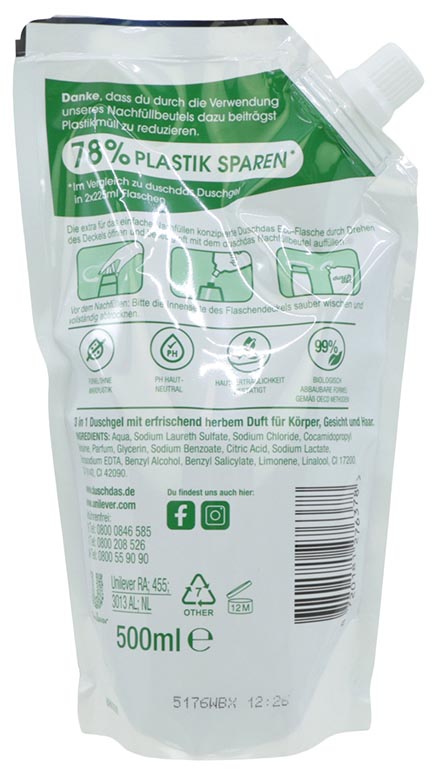 Duschdas 500ml Limette&Minze Nachfüllbeutel
