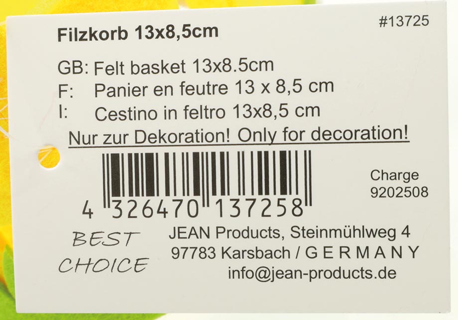 Filzkorb mit Hasenmotiv 13x8,5cm,grasverziert