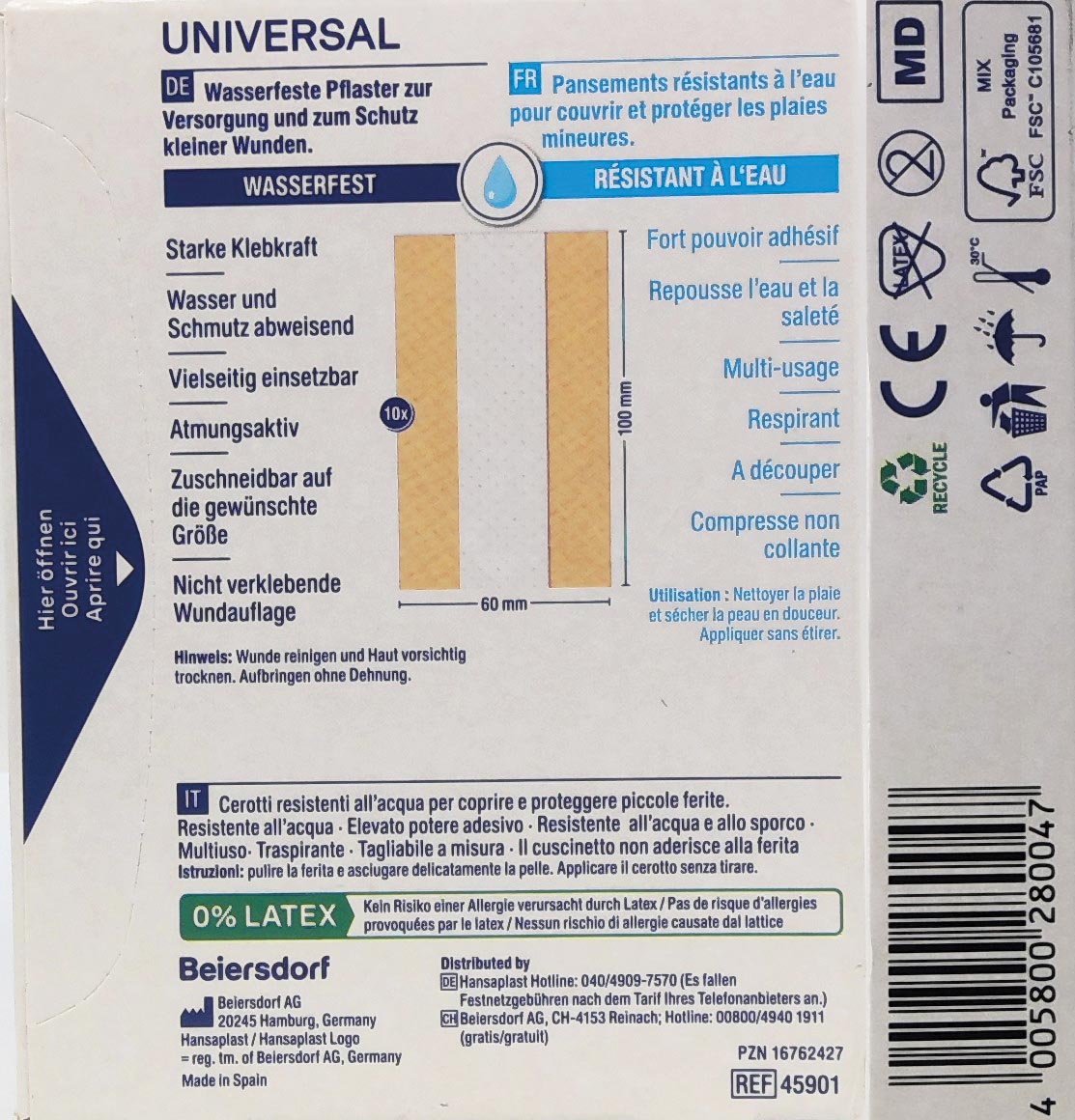 Hansaplast Universal Wasserfest 1m x 6cm