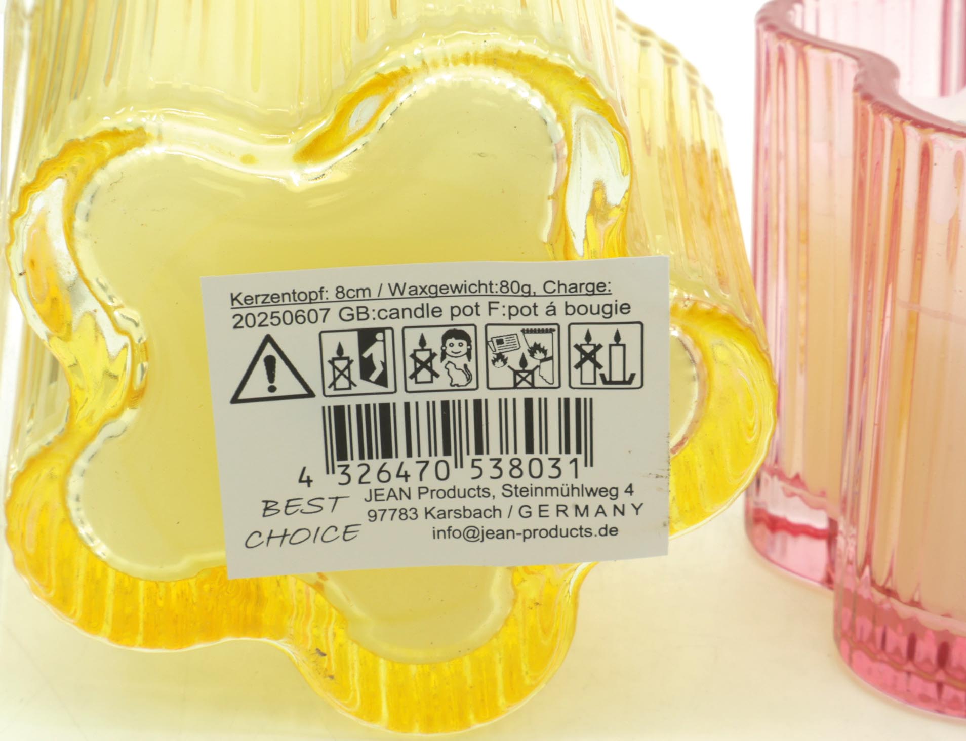 Kerzenglas Blumenform im gestreiften Glas, 8x8x6cm