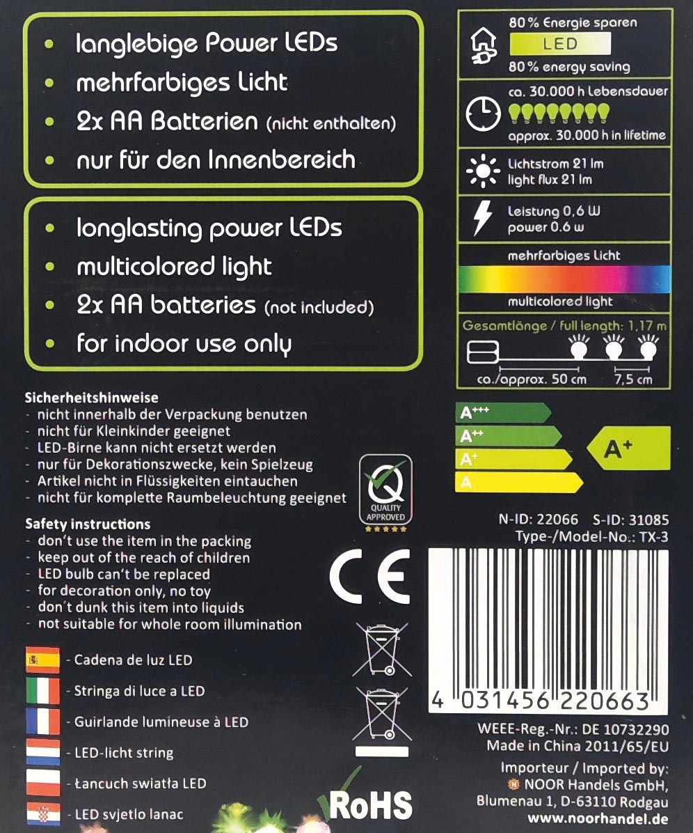 3xAA Batterie nicht enth., Abstand LEDs: 10cm