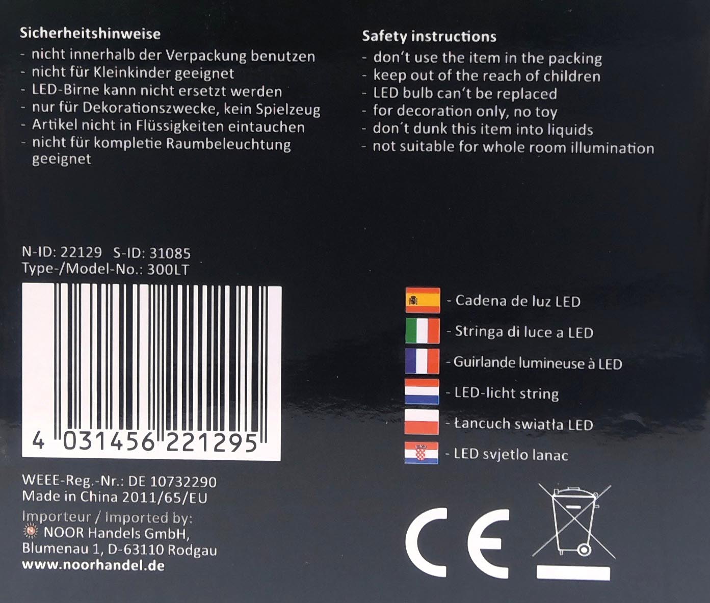 3xAA Batterie nicht enth., Abstand LEDs: 10cm
