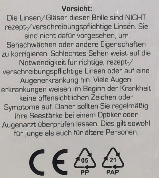 6 Modelle jeweils 1x in Diop. 1.5, 2.0, 2.5, 3.0