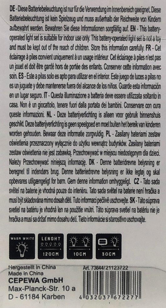 Lichterkette Mikro JUTE, 40 LED, Knopfzelle, 220cm, in