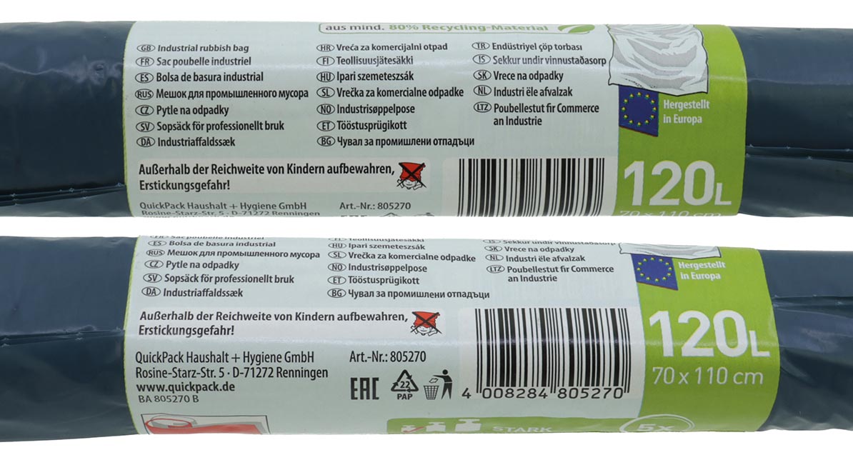 Müllsäcke 120L 5er 110x70cm blau
