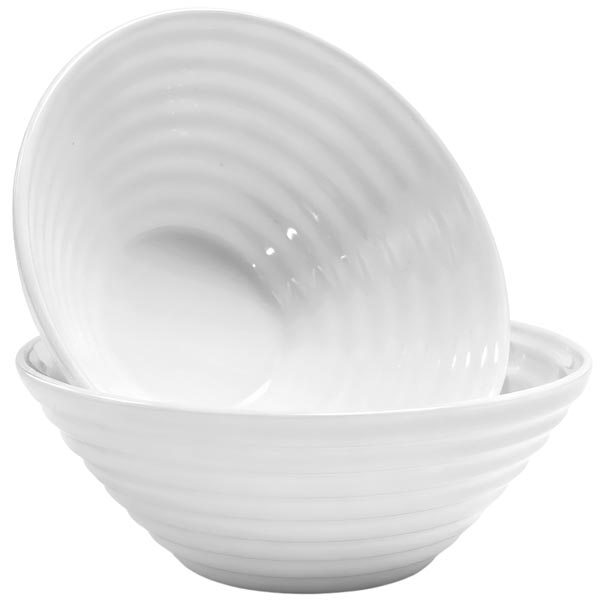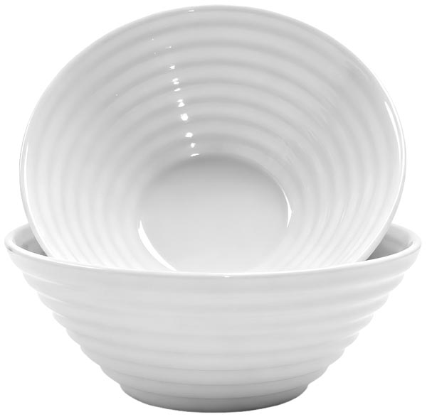 Opal Schüssel groß 16cm weiß mit Rillen Relief