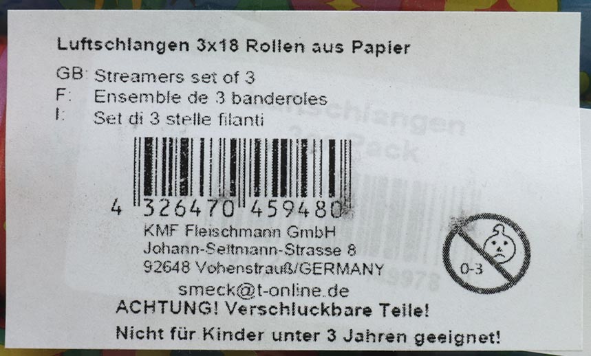 Party Luftschlangen 3er Pack, Designs sortiert