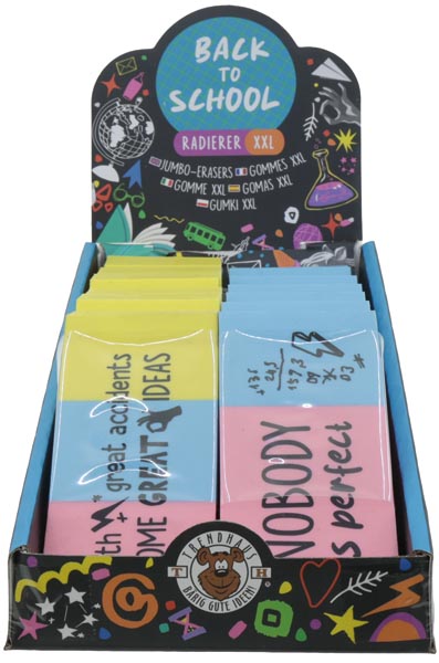 Radierer XXL 2f. sort, 12er Display 10cm