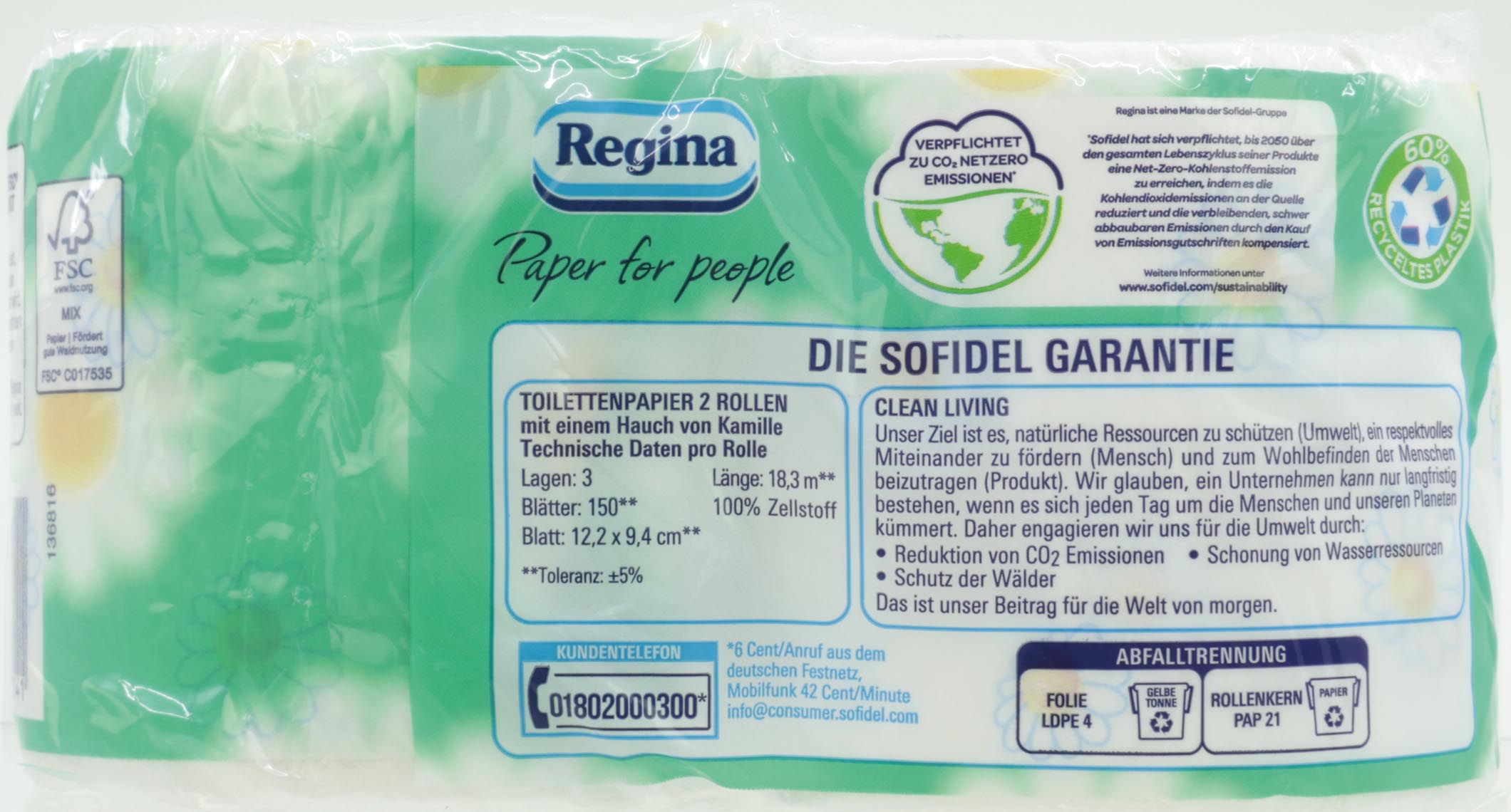 Regina Toilettenpapier 3-lagig 2x150 Blatt