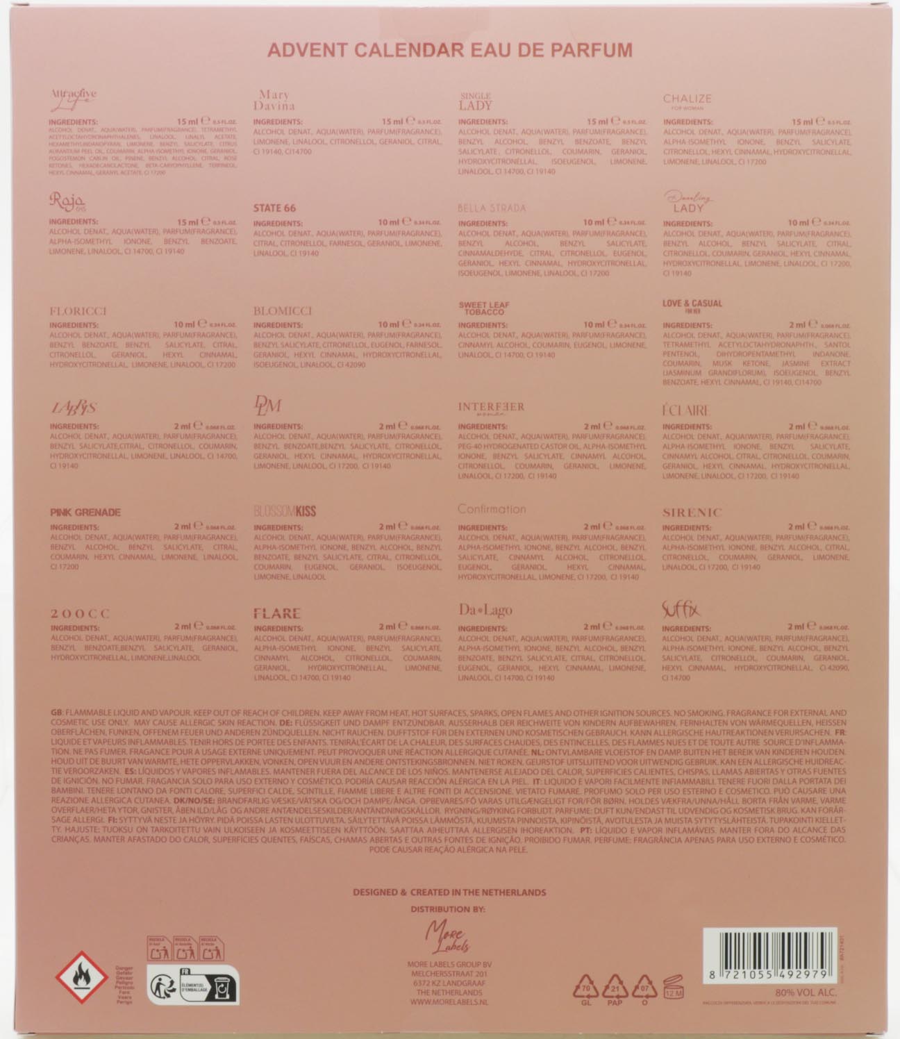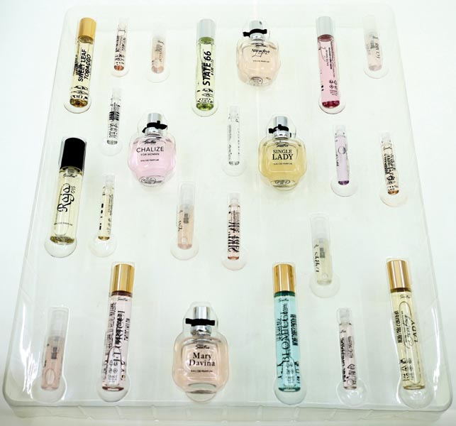 1x15ml tube bottle parfum, 6x10ml roll-on parfum,