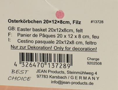 Easter basket (20x12x8cm) made of thick felt, with a long