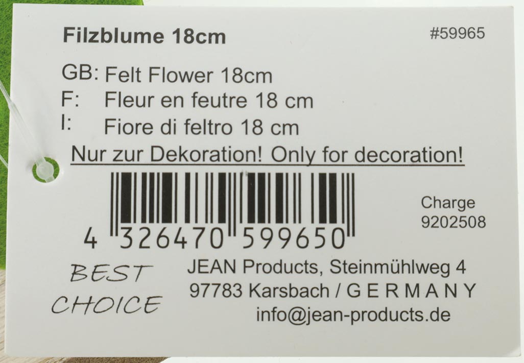 Felt flower 18.7x4.5x9cm, with large leaves and a great