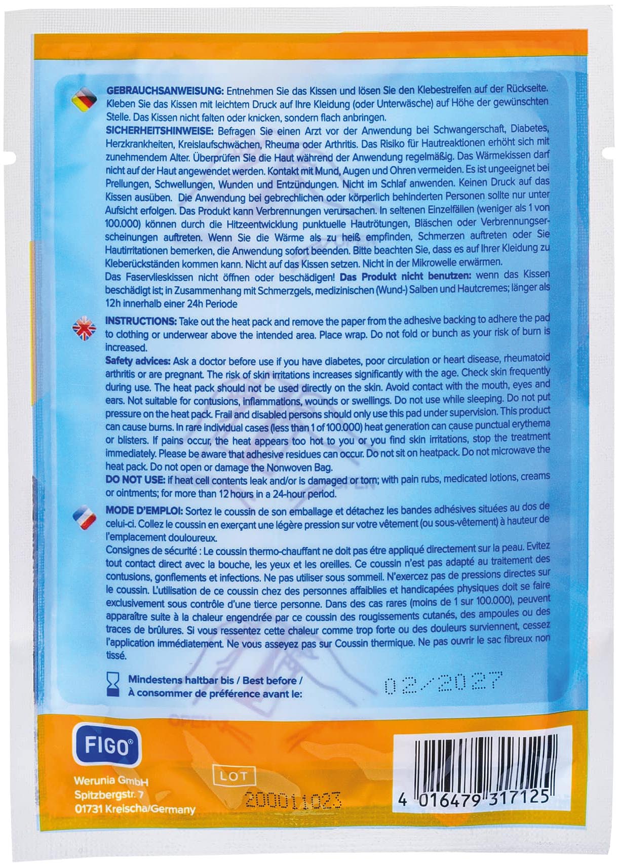 Heat pad FIGO 12h 52°C warm self-adhesive