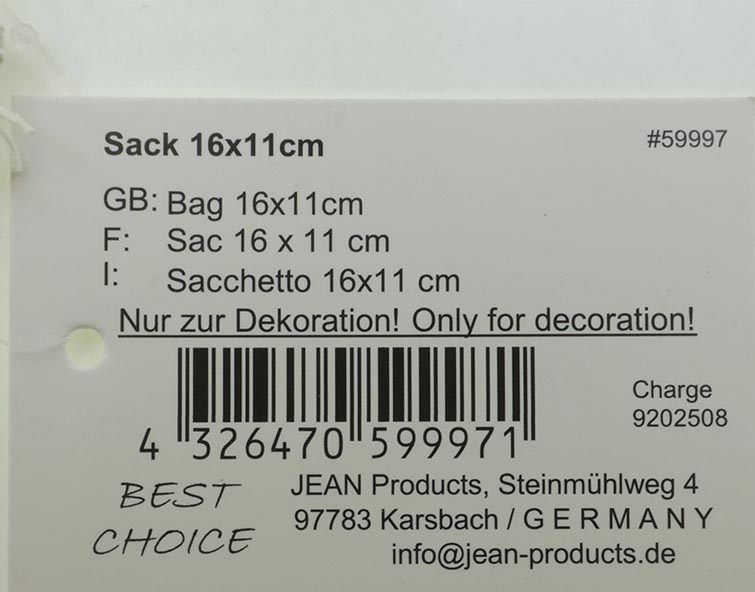 Jute sack with bunny, 16 x 6 x 11 cm, 3 colours