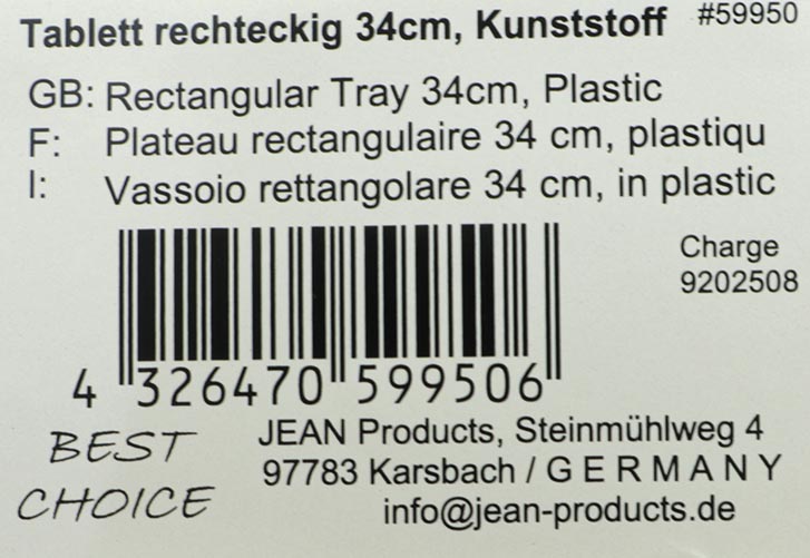 Rectangular tray XL 34 x 23 cm made of plastic, with a