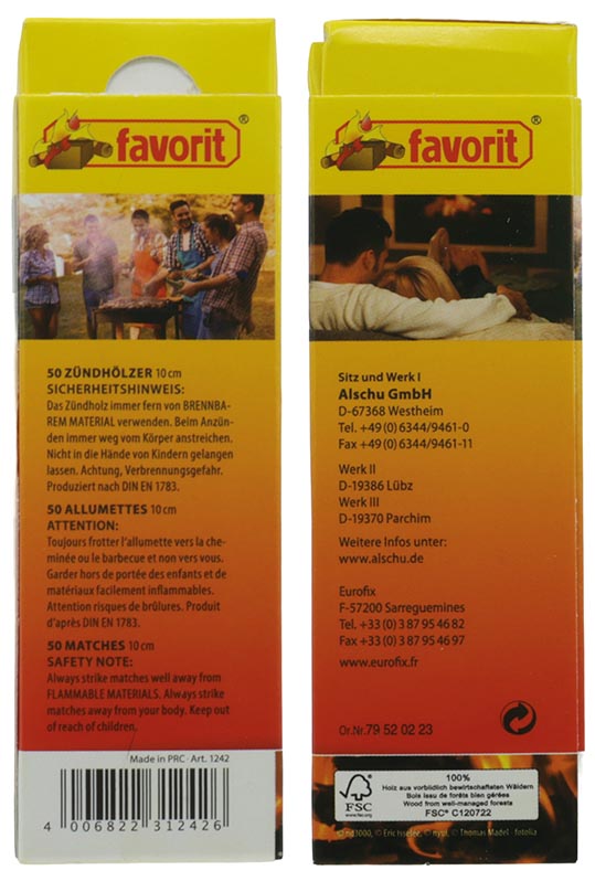 Safety matches 10cm long, 50 pieces 100% FSC