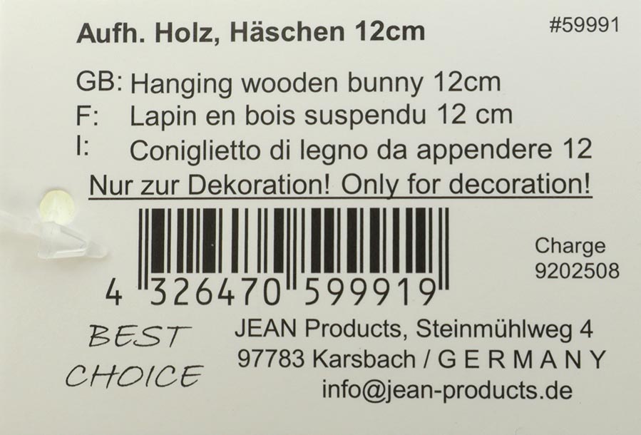 XL Bunny 10x7x16cm – made of fabric, not a toy, for