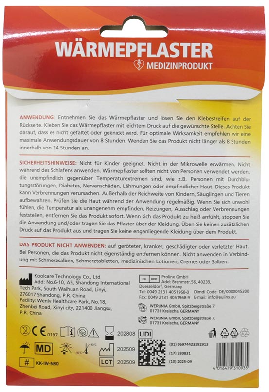 Bandage réchauffement Patch 10x15cm Hypoallergéni