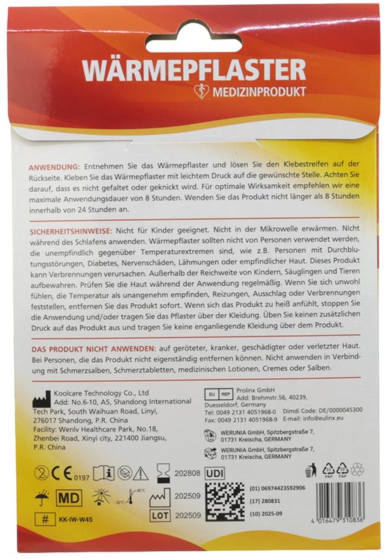 Bandage réchauffement Patch 8h 19x13cm XXL
