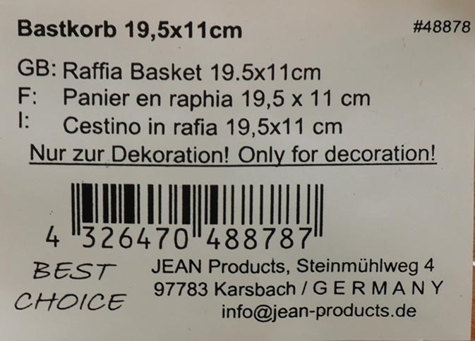 Raffiabasket 22,5x7,5cm classic, col. Assorted