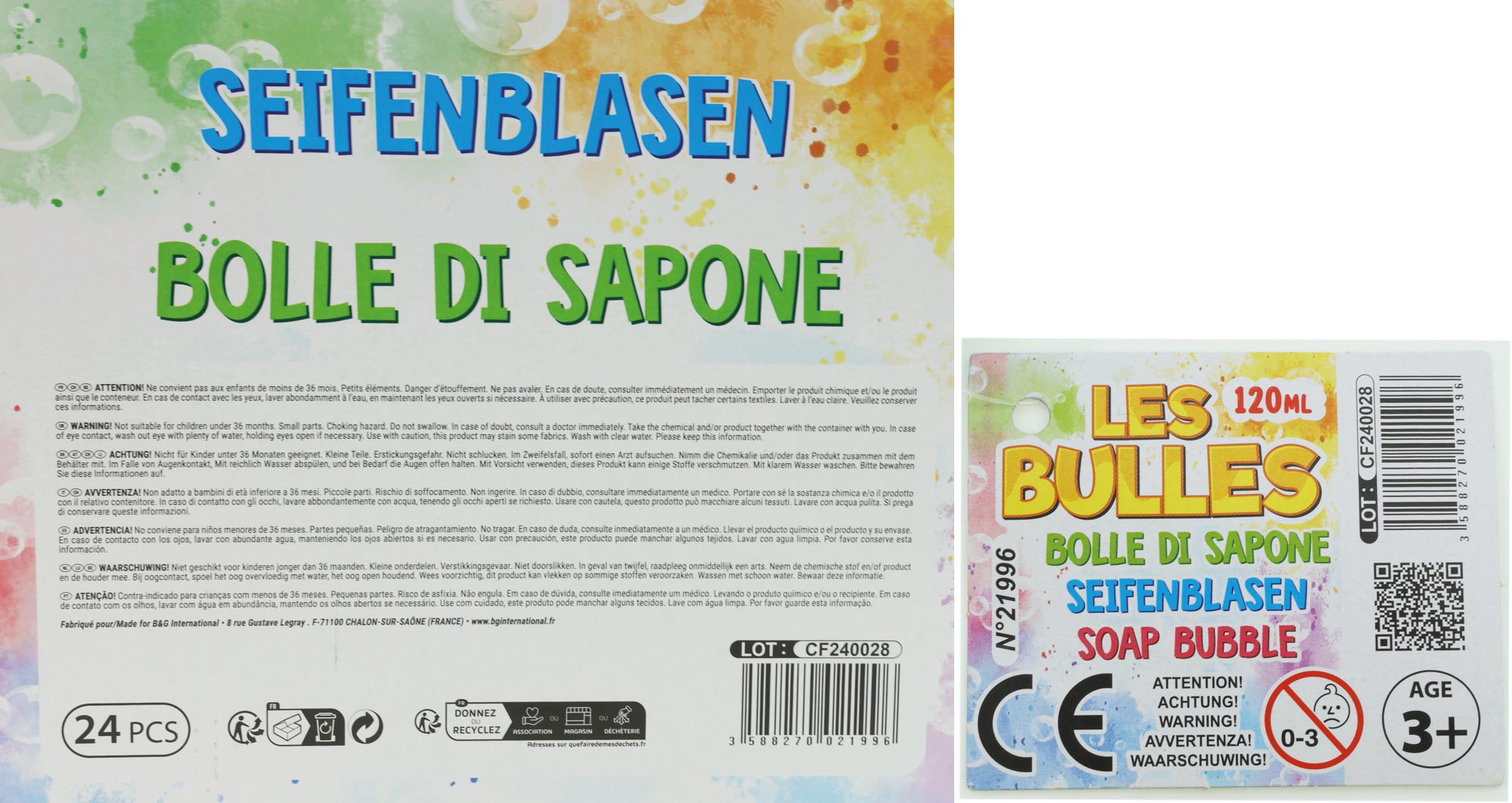 Bâton à bulles 37cm 120ml couleurs assorties en