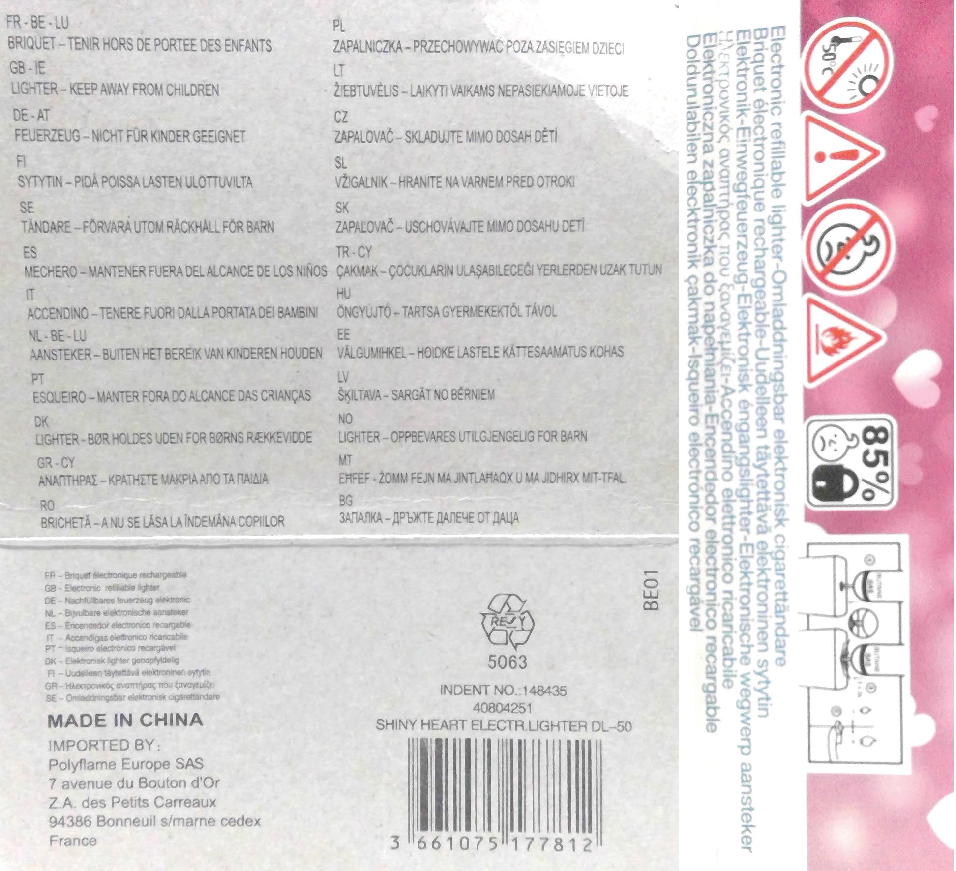 Briquet électrique à coeur scintillant 8x2cm en