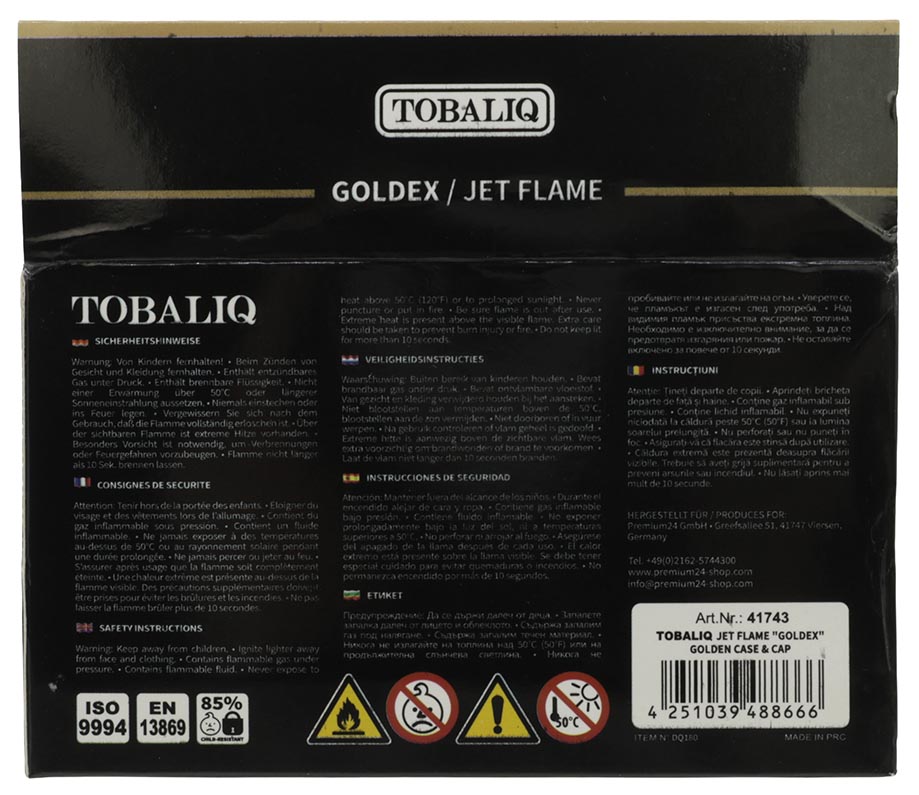 Briquet électrique à flamme jet, noir et or,